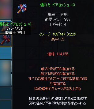 今まで使っていた伝説63杖よりベースダメージが上がるのですが、集中は下がるし、上がるといっても40ちょい・・・どっちを使うべきか迷っています;