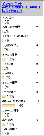 あとは「カバたん帽子」「ピコピコ帽子」「水牛の角」が同列。