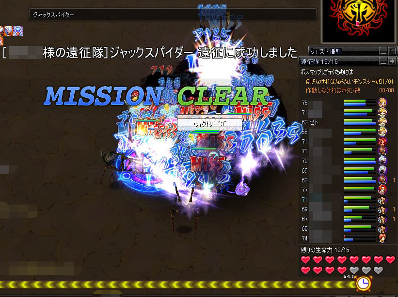 中盤以降、ロングレッグスパイダー(左SS)等が湧き始めたら遠征メンバーのHPに気を配る。