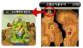 謎石の場所はクレム山地山頂の左手。