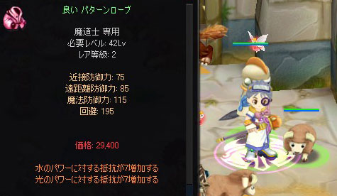 装備効果は水抵抗+7、光抵抗+7。