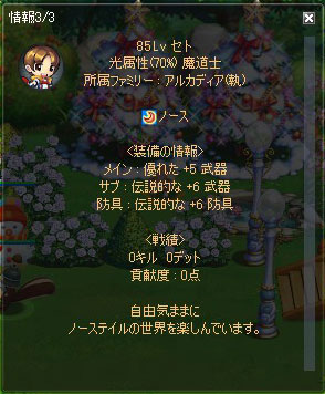 1:メインキャラ名と活動サーバー、キャラクター情報(キャラアイコン右クリックで出る情報)を教えてください。
