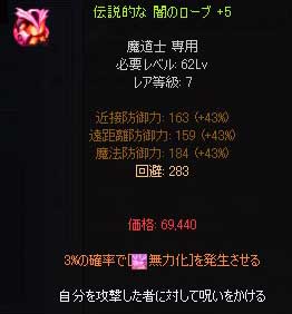 スペシャルアイテムは「水牛の角」。後ろに垂れている尻尾がたまらなくツボです。HP200UP(2007.09.05 指摘により修正)で防御もバランスいいのでよく被ってます。